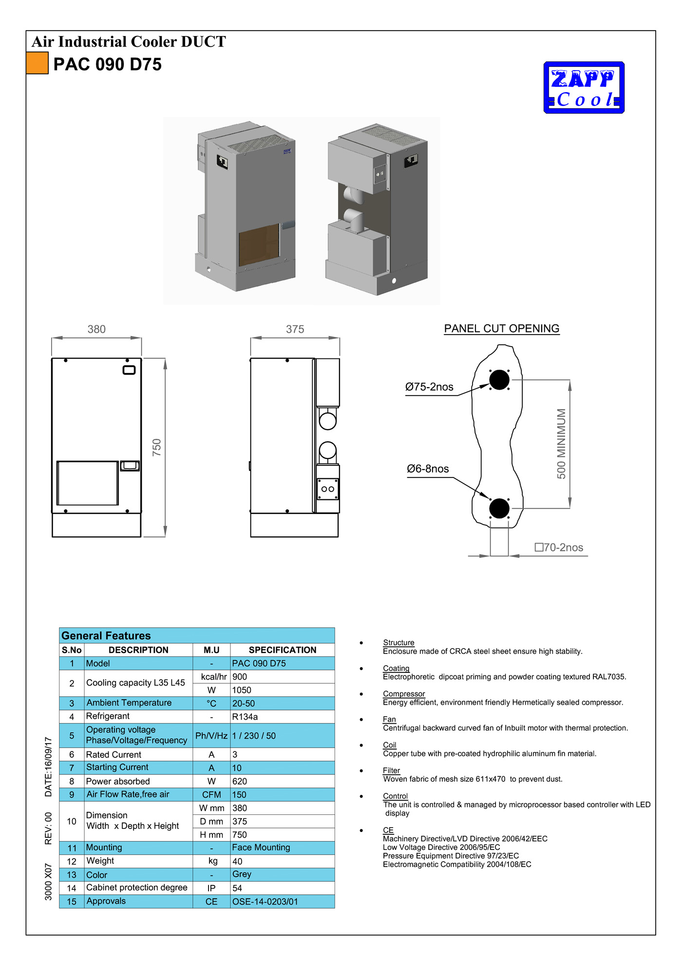 | 380 | 430 | 425 | 750 | Dimension W (mm) | |
