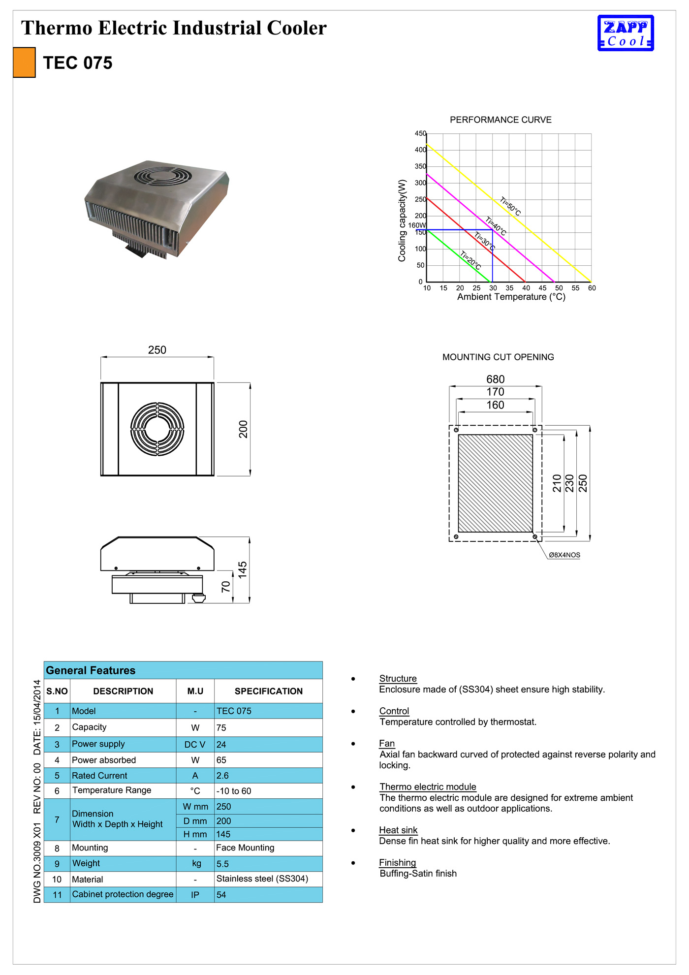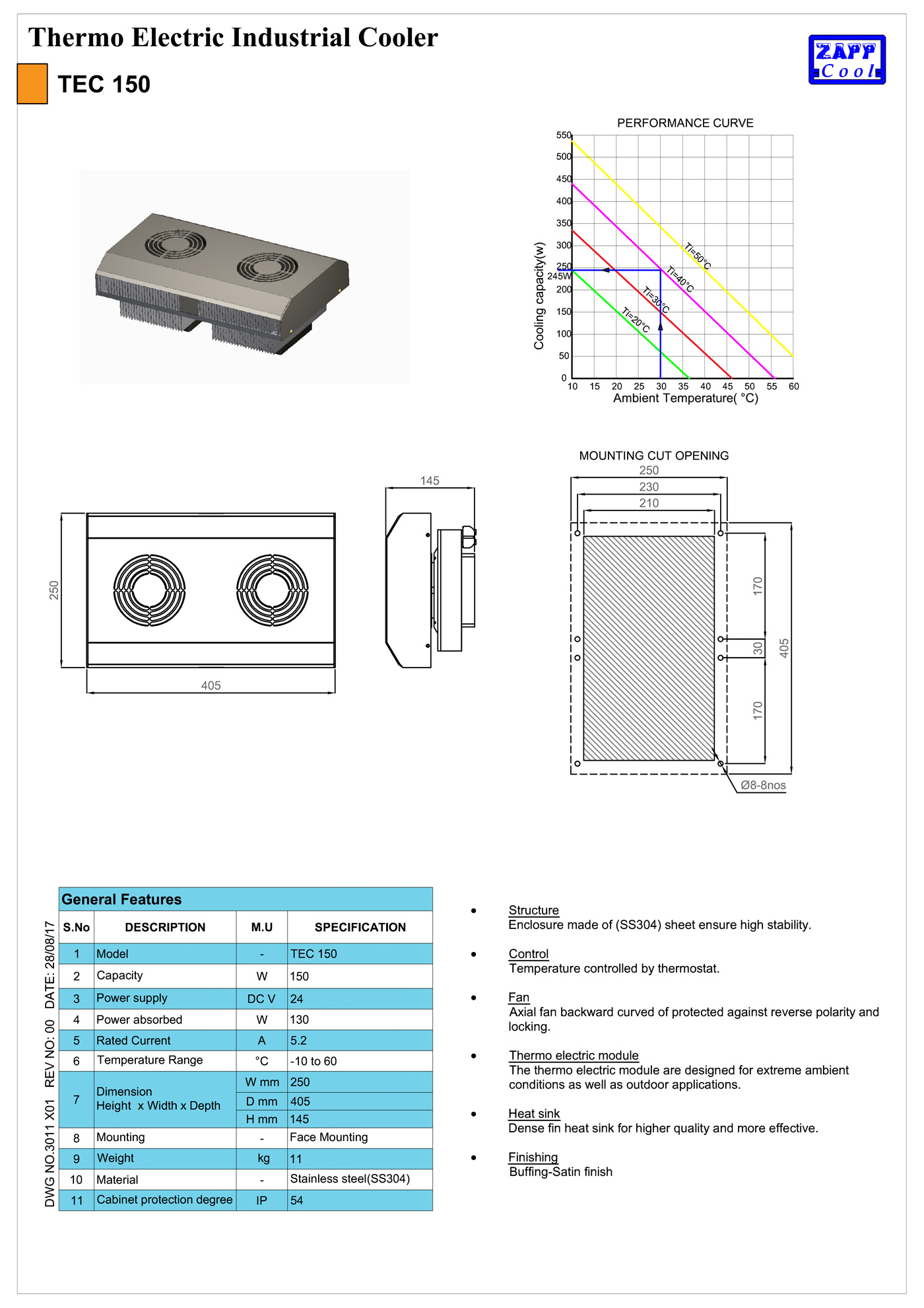 Cooling without compressor and refrigerant, suitable for small sensitive panels like Robotics, laser and CNC system.