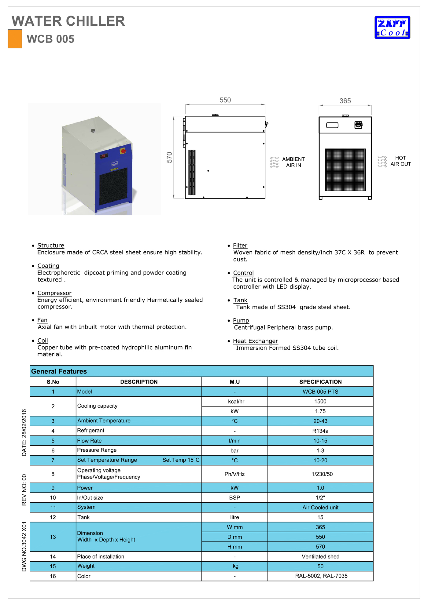 Cools the critical components of machine to enhance the productivity. Laser head, Mould & EDM coolant cooling.