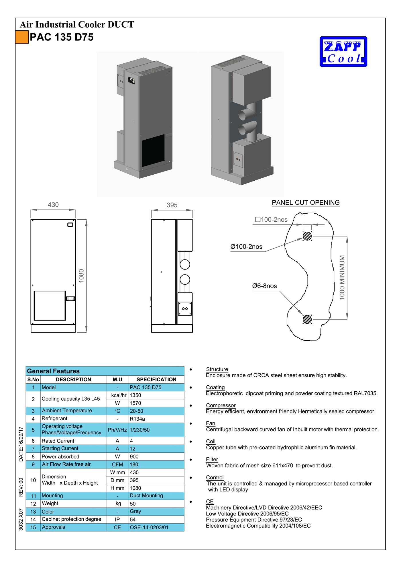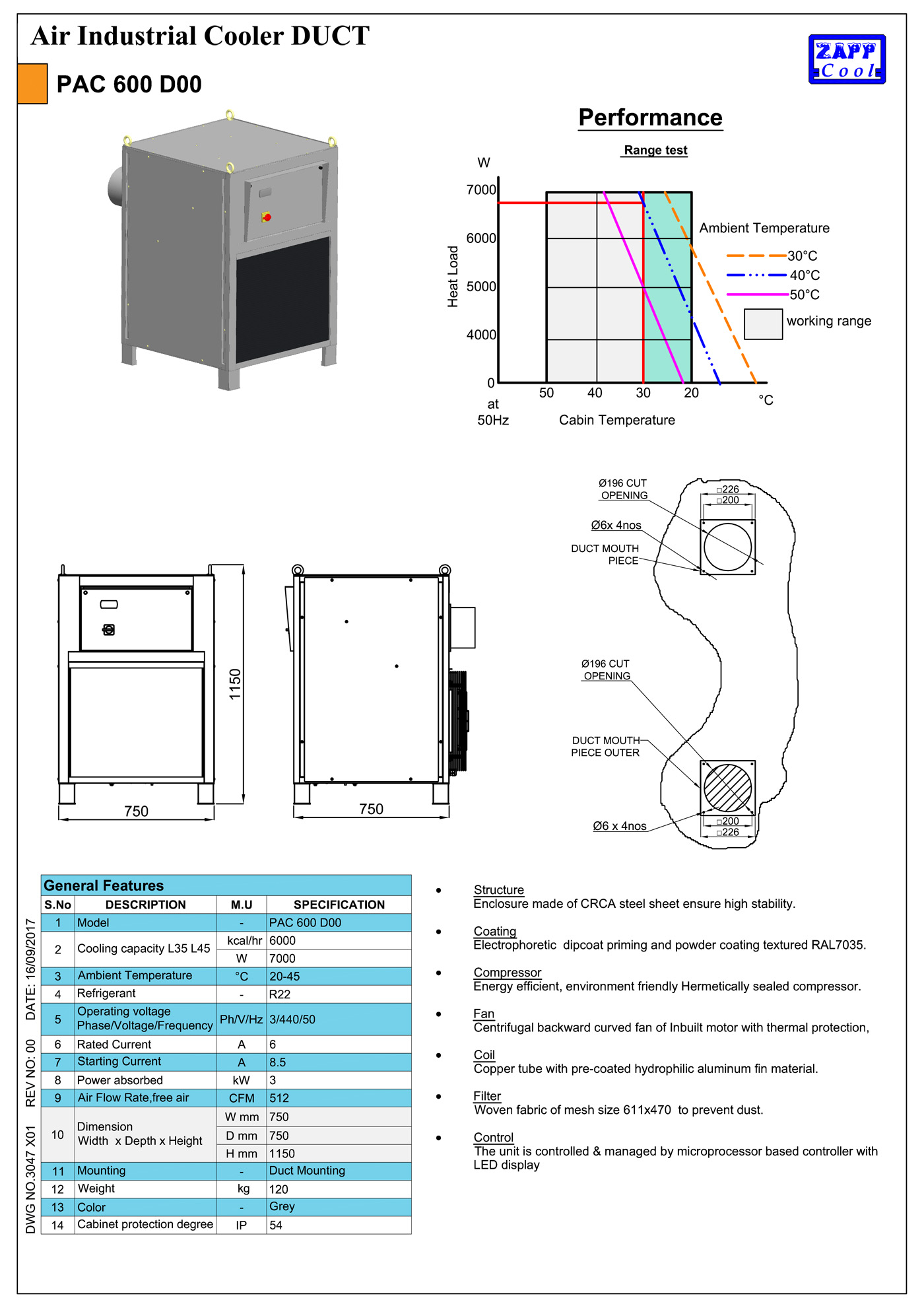 | 1050 | 1570 | 2325 | 3500 | 7000 | Cooling Capacity (W) |